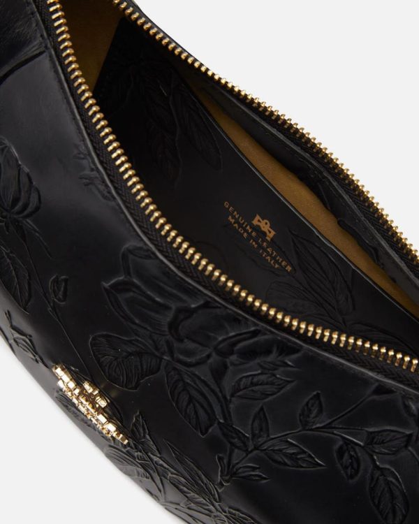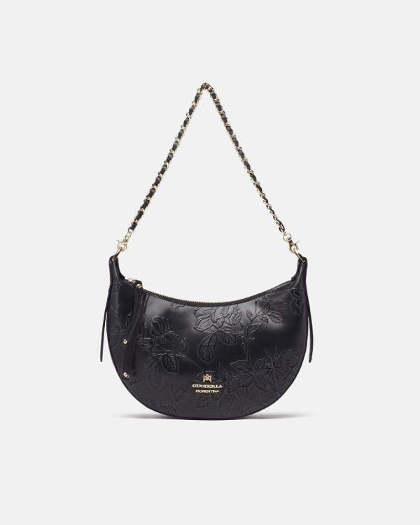 Borsa Tracolla Cuoieria Fiorentina Mimì Small Hobo Nero Donna con Rose Artigianali