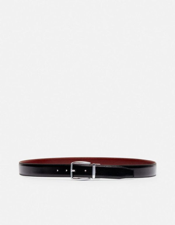 Fibbia squadrata con finitura nickel con meccanismo per uso reversibile.
