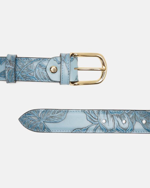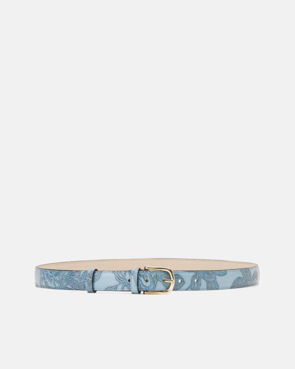 Cinture Cuoieria Fiorentina | Mimì Cintura Da Donna Media In Pelle A Rose Celeste Donna
