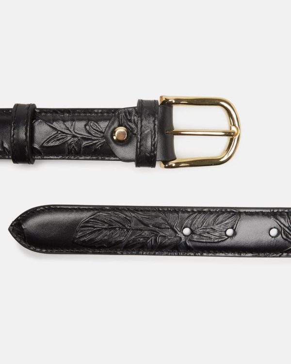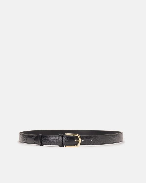 Cinture Cuoieria Fiorentina | Mimì Cintura Da Donna Media In Pelle A Rose Nero Donna