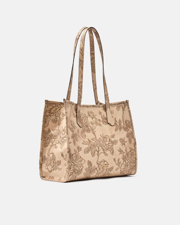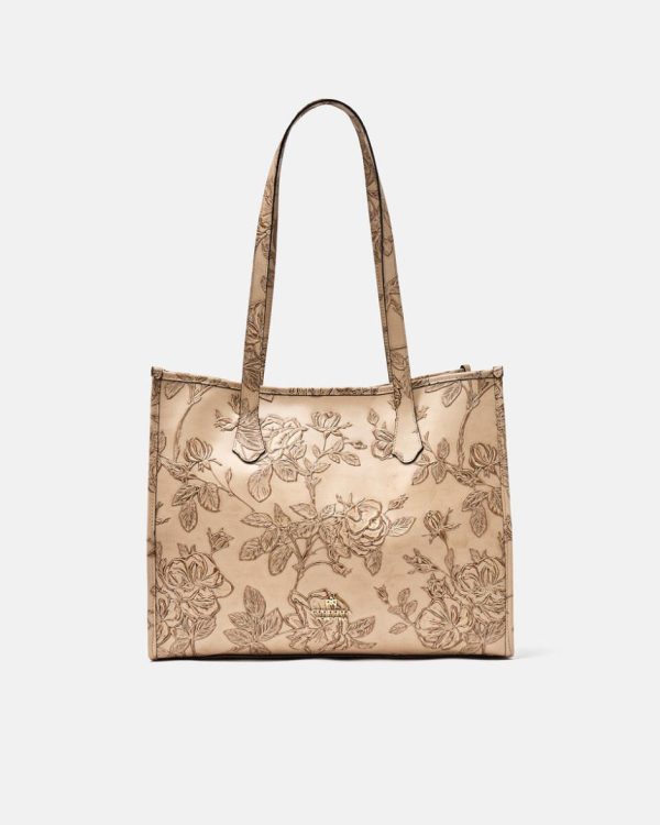 Cuoieria Fiorentina Dora Shopping Taupe Donna | Borsa in Pelle con Design Floreale Rosa
