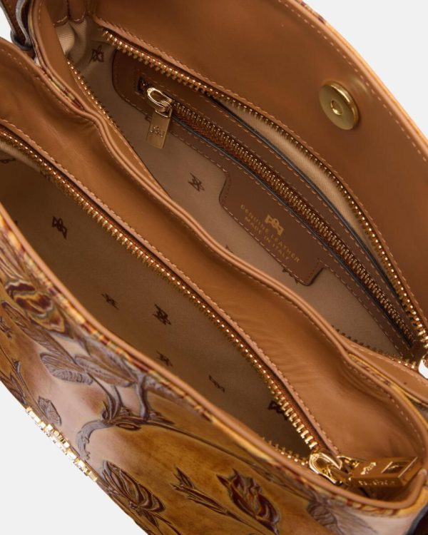 Cuoieria Fiorentina Mimi – Borsa a Tracolla Donna in Pelle con Stampa Floreale, Beige