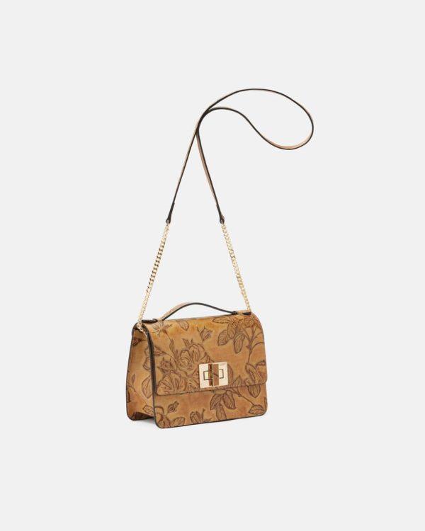 Cuoieria Fiorentina Mimi Mini Bag | Tracolla Crossbody in Pelle con Motivo Floreale Beige per Donna
