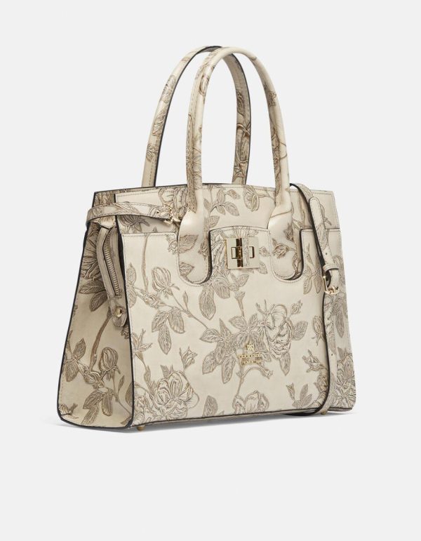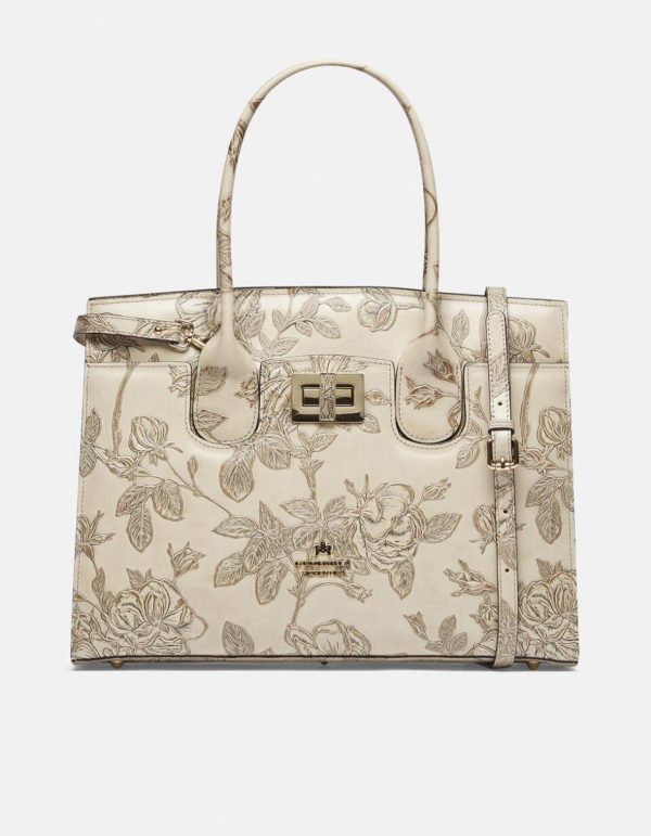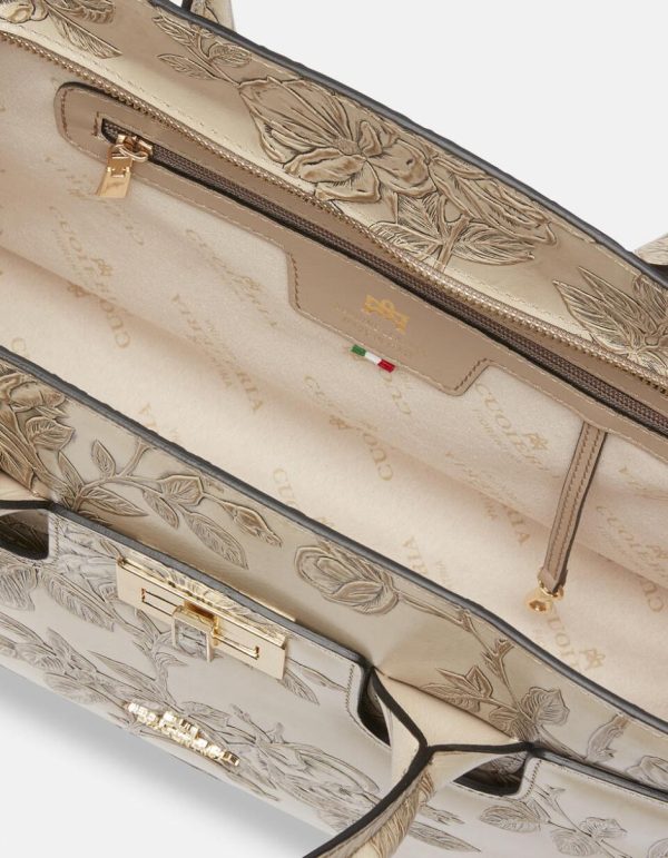 Cuoieria Fiorentina Mimi Tote Bag Large | Borsa Donna in Pelle con Dettagli Metallo Dorato, Taupe