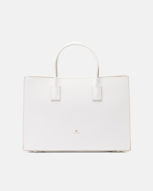 Cuoieria Fiorentina Tote Bag Alice | Borsa Grande Squadrata in Pelle Bianca con Logo Oro