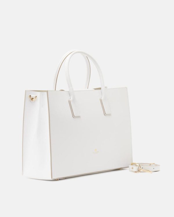 Tote Bag Cuoieria Fiorentina | Alice Big Tote Bag Squadrata Bianco Donna