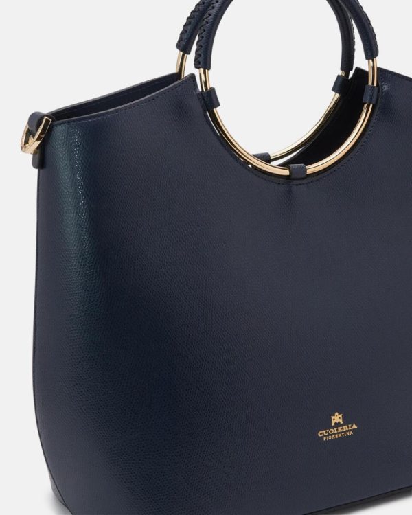 Cuoieria Fiorentina Tote Bag Oblò in Vitello Palmellato Navy – Borsa Maxi Donna Elegante con Tracolla