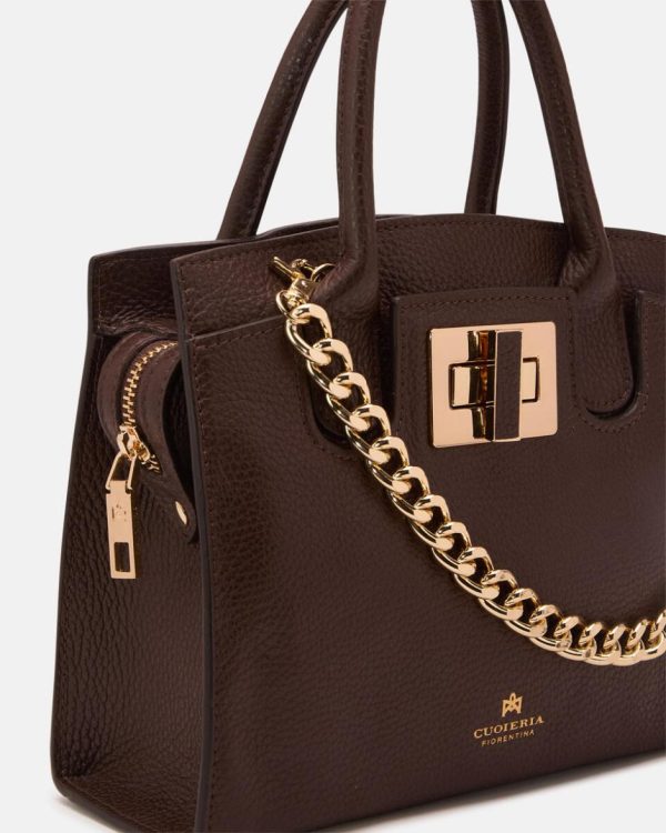 Cuoieria Fiorentina Tote Bag Piccola in Pelle di Vitello – Cioccolato con Tracolla Rimovibile