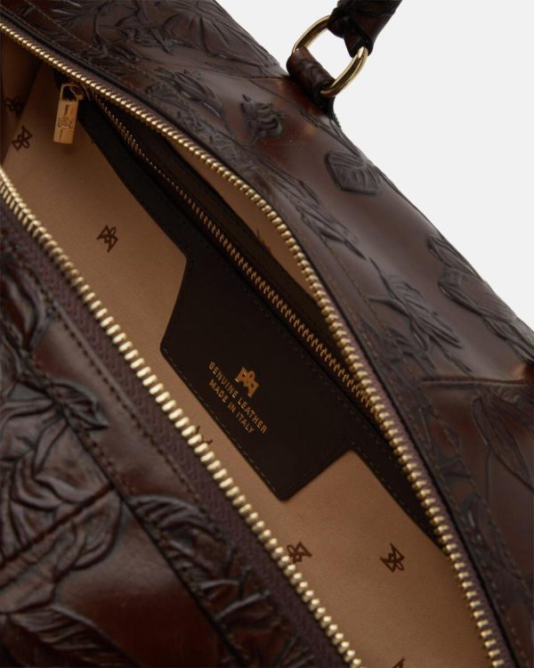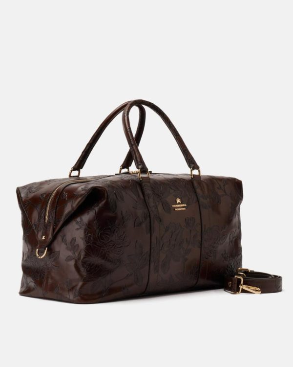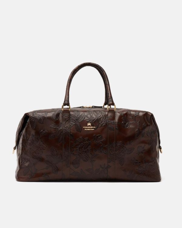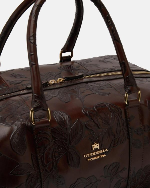 Cuoieria Fiorentina Weekender Mimì Mogano – Borsa da Viaggio Donna con Rose Dipinte a Mano
