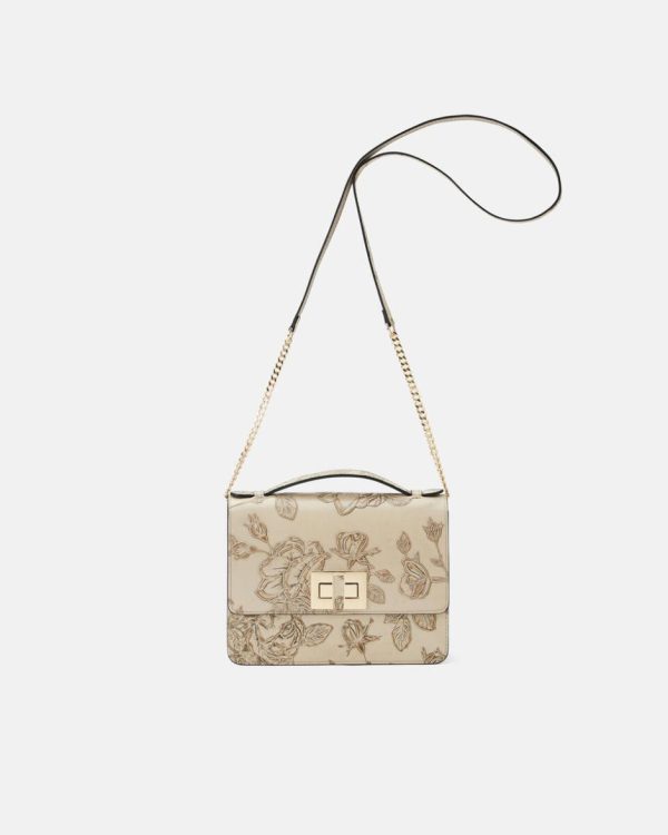 Mini Bag Cuoieria Fiorentina | Mimi Big Crossbodyclutch Con Tracolla In Pelle E Metallo Taupe Donna