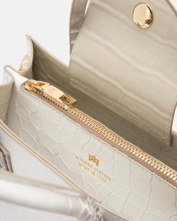 Alice si veste di Croco. Una mini tote, un grande accessorio di eleganza e glam. Da indossare con la tracolla o a mano durante gli aperitivi, la piccola tote Alice permette di portare con sé il necessario nelle serate con i colleghi. Lo scomparto interno sa accogliere cellulare, chiavi e carte di credito. Non solo: il pellame strutturato la rende la borsa ideale da indossare ogni giorno per valorizzare qualsiasi outfit.