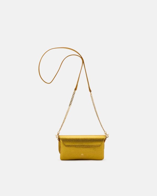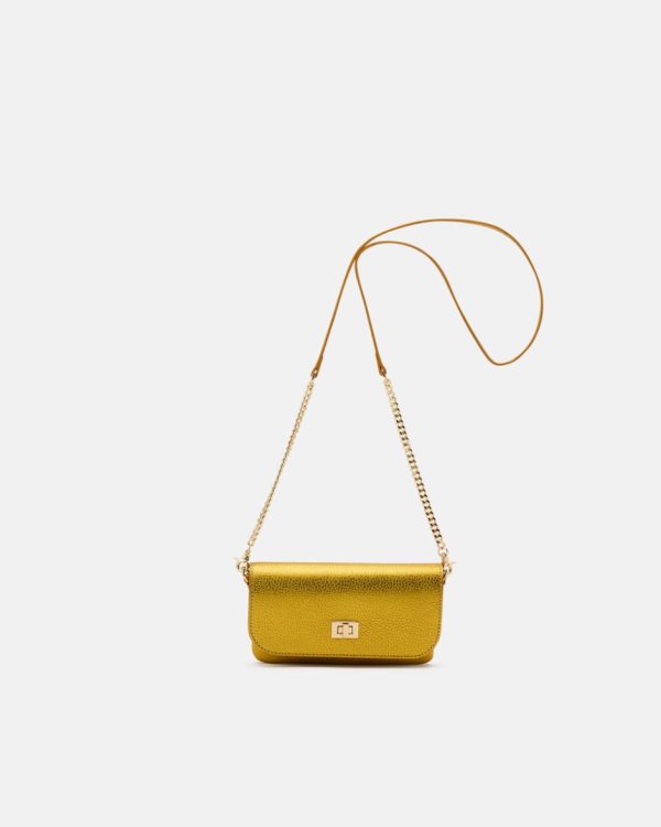 Una piccola borsa dal design lineare ed elegante che si fa glam. Lo spazio al suo interno permette di portare con sé tutto ciò che è indispensabile nelle serate con le amiche. Il pellame, dalle sfumature metallizzate, è illuminato da inserti dorati. Comodissima da indossare a spalla o a tracolla, si può trasformare anche in pochette durante gli aperitivi. La mini clutch è perfetta per la donna che non vuole passare inosservata.
