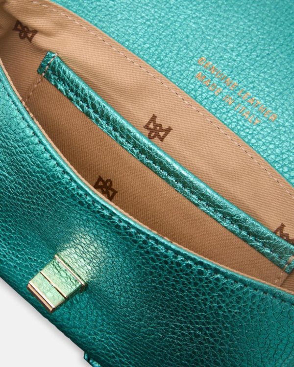Una piccola borsa dal design lineare ed elegante che si fa glam. Lo spazio al suo interno permette di portare con sé tutto ciò che è indispensabile nelle serate con le amiche. Il pellame, dalle sfumature metallizzate, è illuminato da inserti dorati. Comodissima da indossare a spalla o a tracolla, si può trasformare anche in pochette durante gli aperitivi. La mini clutch è perfetta per la donna che non vuole passare inosservata.