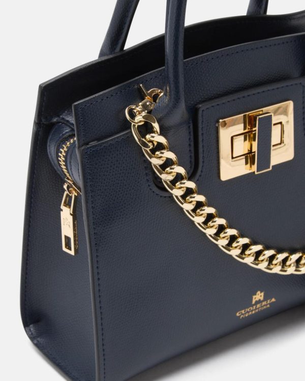Tote Bag Cuoieria Fiorentina | Bella Mini Tote In Vitello Micro Grain Navy Donna