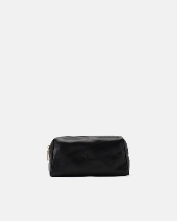 Necessaire in Cuoio Vegetale Nero | Portatrucchi Elegante Donna/Uomo Cuoieria Fiorentina