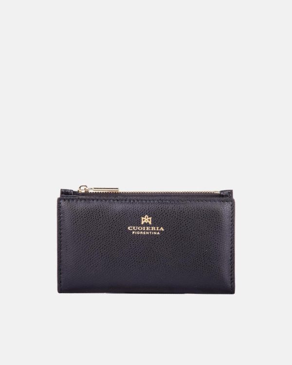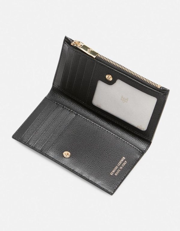 Dettagli esterni: portamonete con zip e logo stampato a fuoco colore oro.
