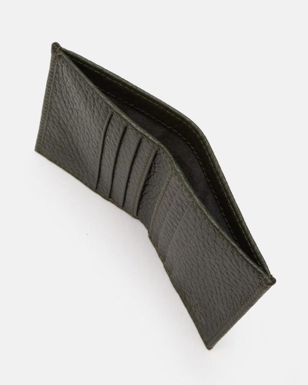 Dettagli interni: sei slot porta carte, doppia tasca e scomparto banconote con due slot portacarte.