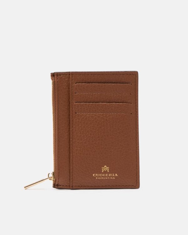 Portafogli Cuoieria Fiorentina | Velvet Portacarte Con Zip Caramel Donna