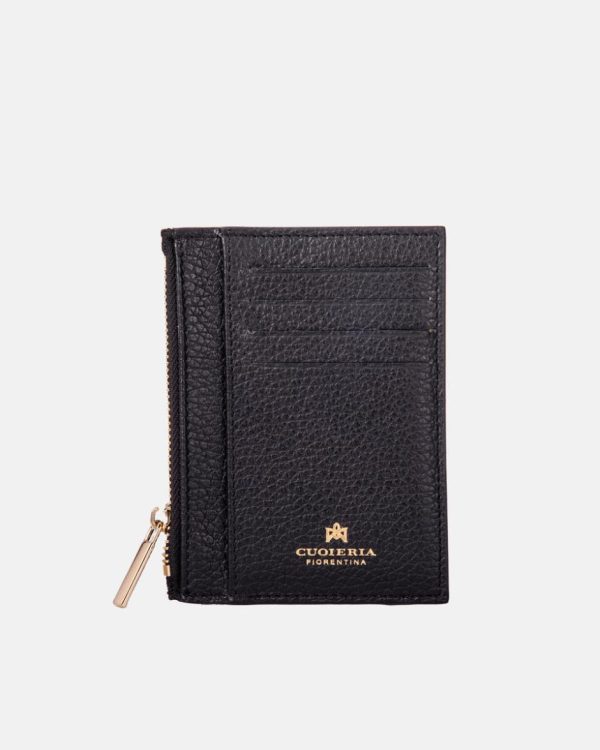 Portafogli Cuoieria Fiorentina | Velvet Portacarte Con Zip Nero Donna