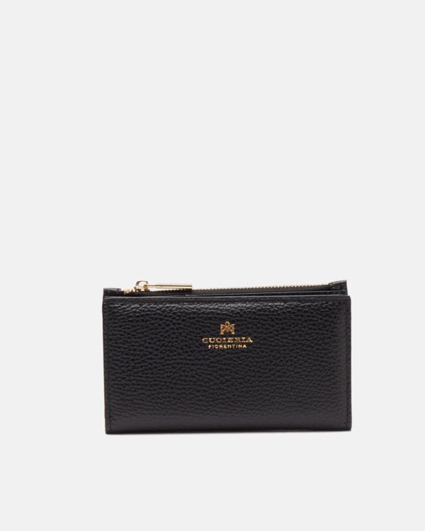 Portafoglio Donna Cuoieria Fiorentina | Portacarte e Portamonete in Pelle di Vitello Nero con Logo Oro