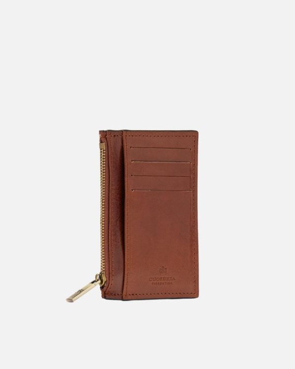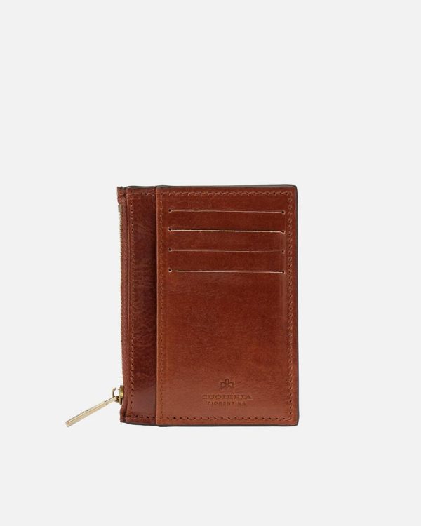 Portafogli Cuoieria Fiorentina | Portatessere Con Zip In Cuoio Marrone Donna/Uomo