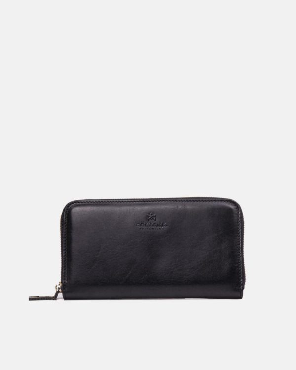 Portafogli Cuoieria Fiorentina | Portafoglio Zip Around Cuoio Nero Donna
