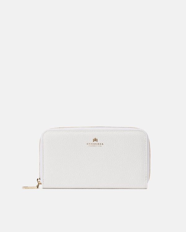 Portafogli Cuoieria Fiorentina | Velvet Portafoglio Zip Around Bianco Donna
