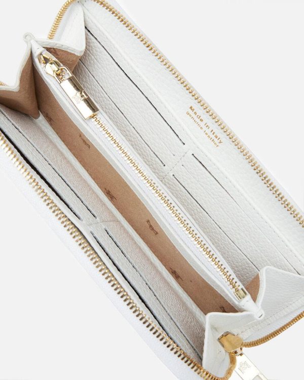 Portafoglio Zip Around in Pelle di Vitello | Cuoieria Fiorentina Bianco con Dettagli Oro
