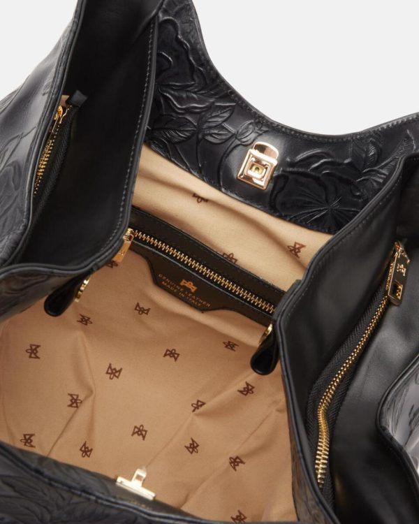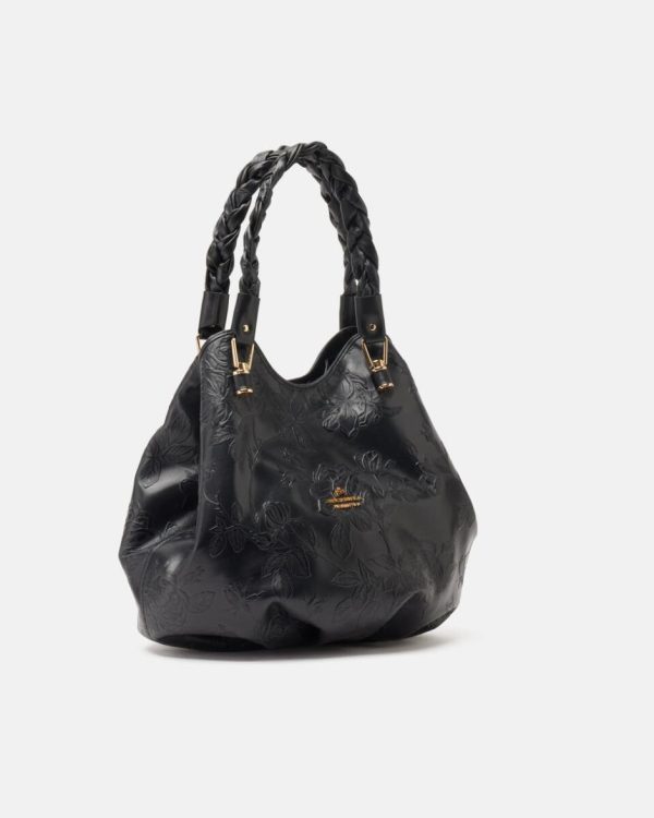 Shopping Cuoieria Fiorentina | Mimì Borsa A Spalla Con Doppiomanico Intrecciato Nero Donna