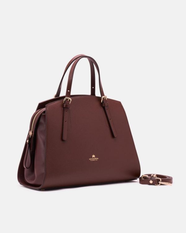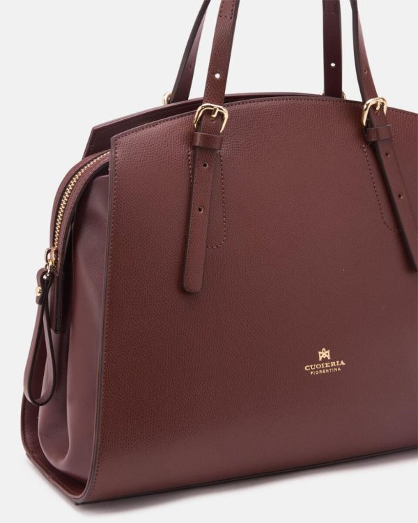 Tote Bag Cuoieria Fiorentina Alice Medium | Duffle in Pelle Cioccolato con Tracolla Regolabile