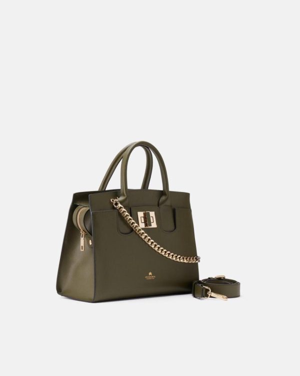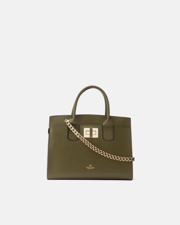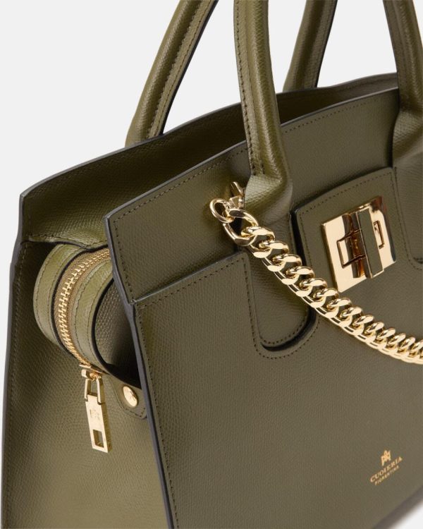 Tote Bag Cuoieria Fiorentina | Bella Medium Tote Bag Con Accessorio Metallo Militare Donna