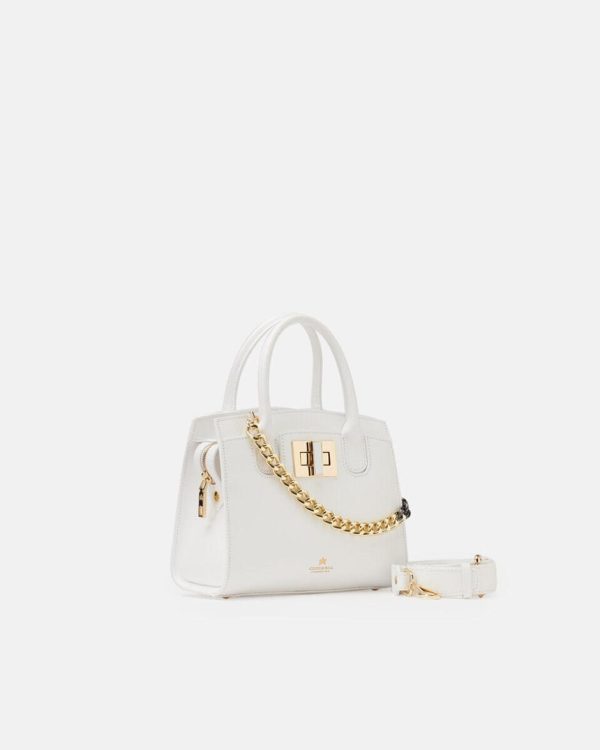 Stile e personalità la rendono la borsa ideale per chi non ha paura di osare e brillare. Piccola di dimensioni, ma il suo interno è perfetto per contenere gli indispensabili per le serate più chic. Che si porti a mano o a spalla grazie alla tracolla removibile, saprà attirare gli sguardi ammirati. Quando il carattere si mescola all’eleganza.