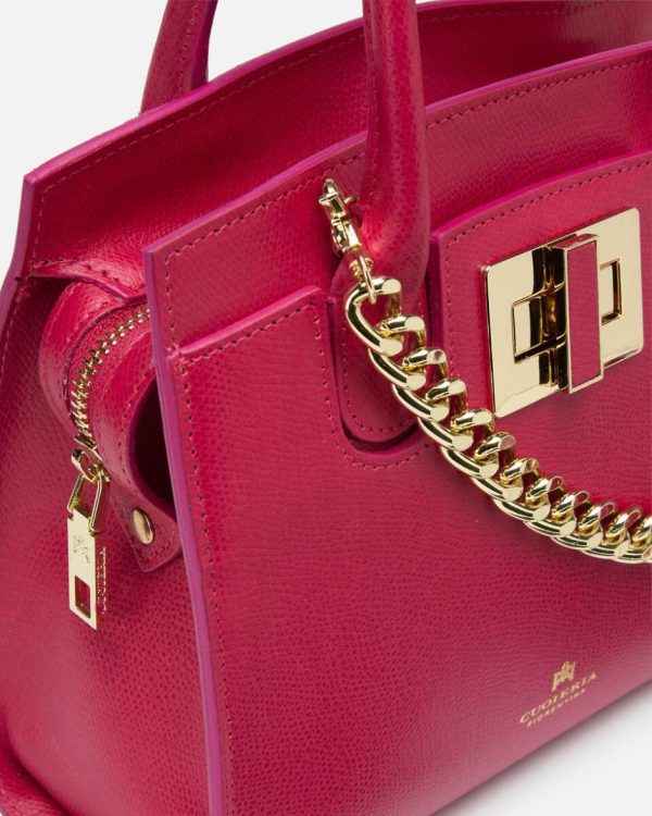 Tote Bag Cuoieria Fiorentina | Bella Mini Tote In Vitello Micro Grain Fucsia Donna