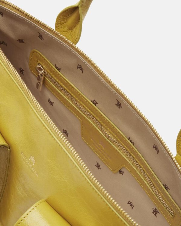 Dettagli interni: singolo scomparto con taschini e tasca con zip.