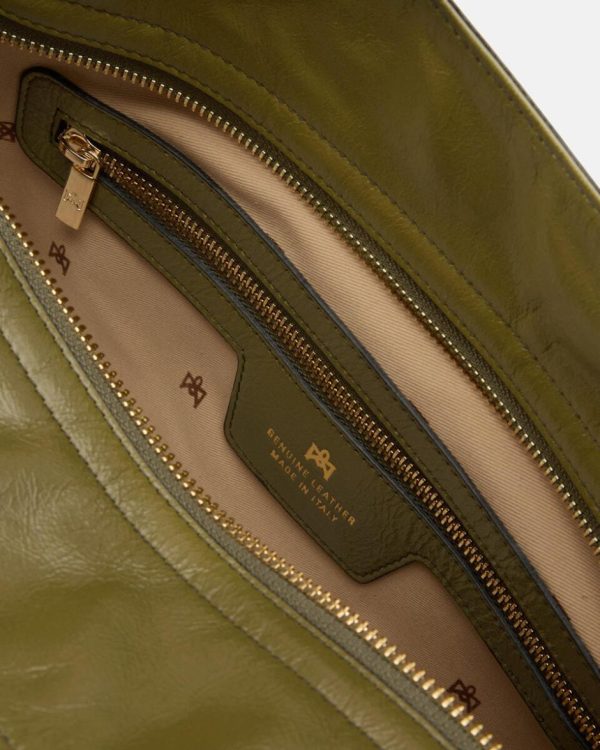 Raffinata pelle di vitello con mano morbida, dall’aspetto lucido e grinzoso.