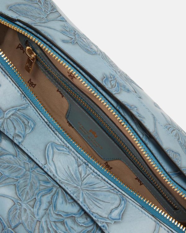 Mimi rappresenta una vera icona di stile ed un’esclusiva mondiale del brand. La particolarità è racchiusa nel lungo e articolato processo composto da oltre 13 passaggi di lavorazione del motivo floreale. Non solo pelle di vitello, ma una vera opera d’arte, sapientemente dipinta a mano su diversi livelli. Il risultato finale è un materiale unico nel suo genere, con il quale si realizzano piccoli capolavori.