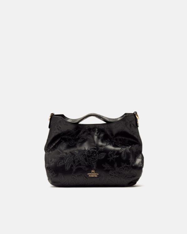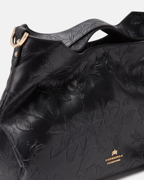 Tote Bag Cuoieria Fiorentina Gaia Mimì Nero | Borsa Donna in Pelle con Rose Artigianali