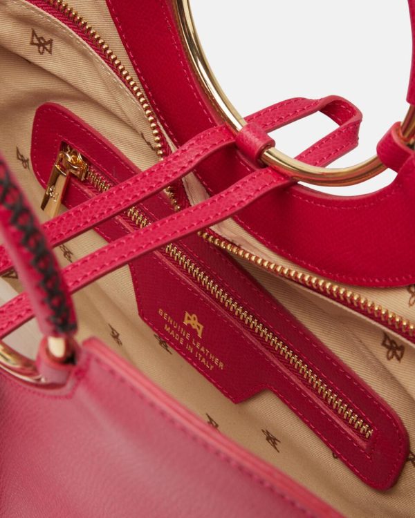 Tote Bag Cuoieria Fiorentina in Vitello Palmellato Fucsia | Oblò Media con Tracolla Rimovibile