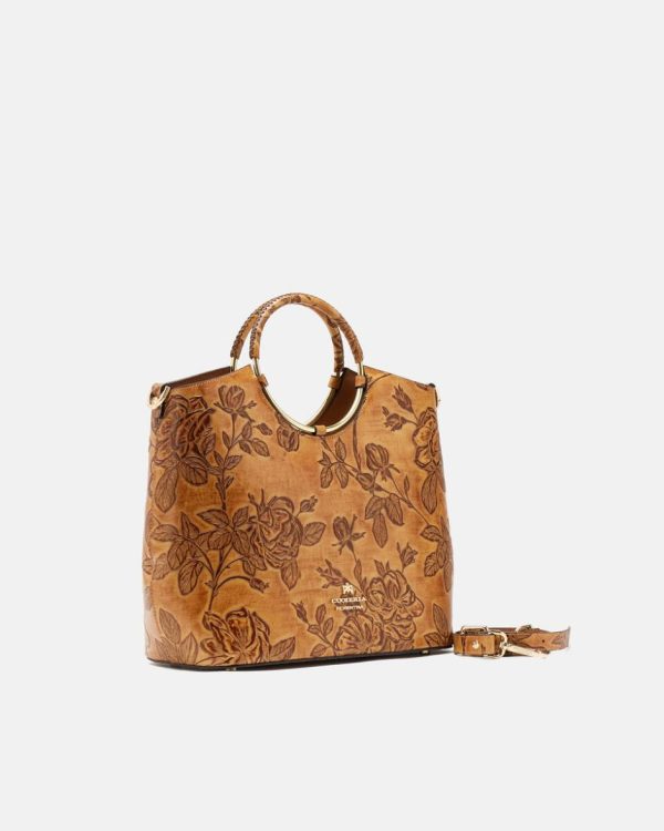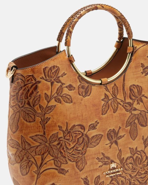 Tote Bag Cuoieria Fiorentina Mimì | Borsa Spiaggia Beige con Rose Dipinte a Mano