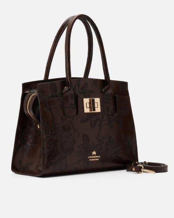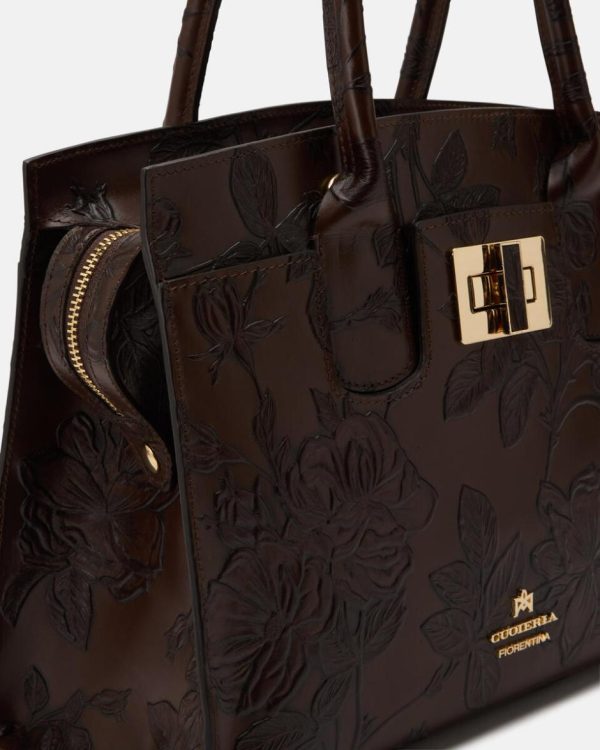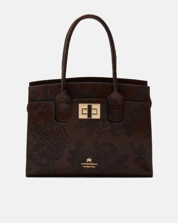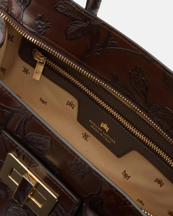 Raffinata, preziosa e dalla dimensione perfetta per contenere l’essenziale nelle giornate ricche di impegni, Mimì medium tote esprime la propria eleganza attraverso un design solido e i luminosi inserti dorati. Con un pellame arricchito da tredici livelli di lavorazione per creare uniche rose, è capace di resistere ai tanti impegni quotidiani. Tote ideale per la donna in movimento, indipendente e capace di esprimere il proprio stile attraverso gli accessori che sceglie.