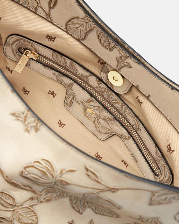 Tote Bag Gaia Mimì Taupe Donna in Pelle con Rose | Cuoieria Fiorentina
