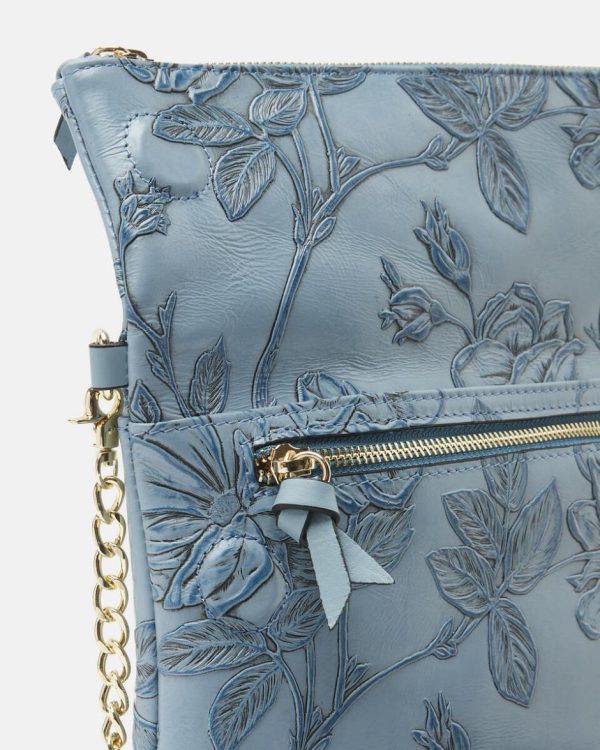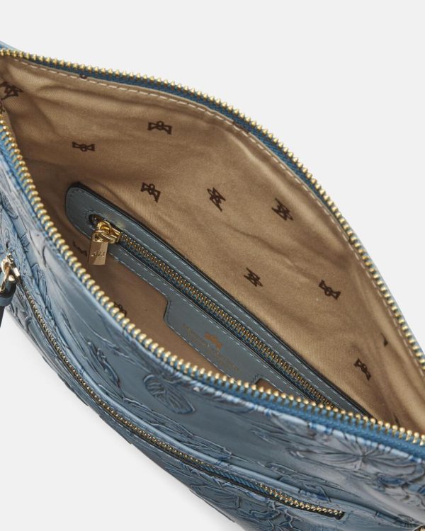 Tracolla Cuoieria Fiorentina | Mimì Tracolla Reversibile In Pelle Con Doppia Bandoliera Celeste Donna