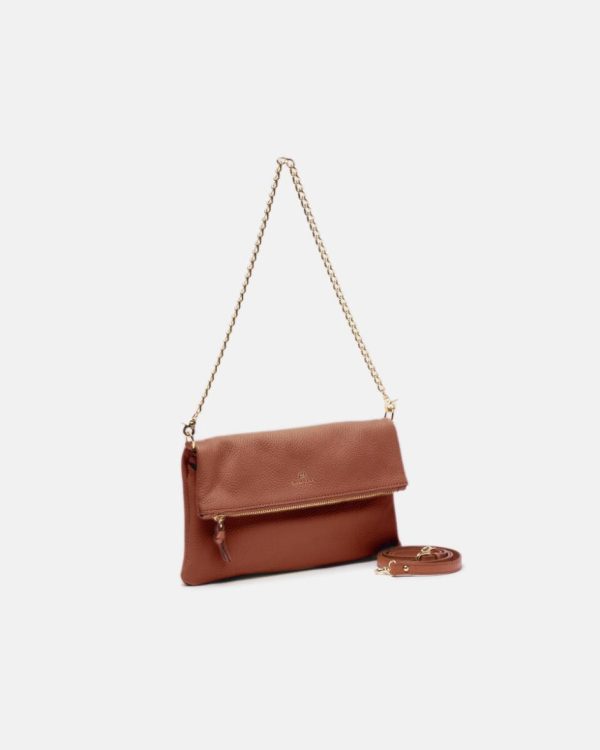 Dettagli esterni: chiusura con patta e zip con logo stampato a fuoco colore oro; tasca frontale con chiusura a zip.