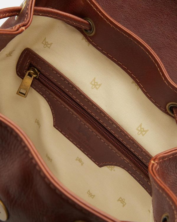 Metropolitano e compatto, questo zaino in cuoio presenta cuciture a mano, logo stampato a fuoco, dettagli in color ottone invecchiato e due tasche anteriori con zip. Grazie alle tracolle regolabili, è ideale per outfit dinamici e casual. E’ il regalo perfetto per personalità giovani e sempre in movimento.