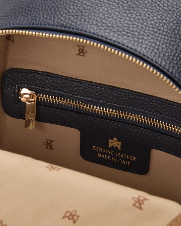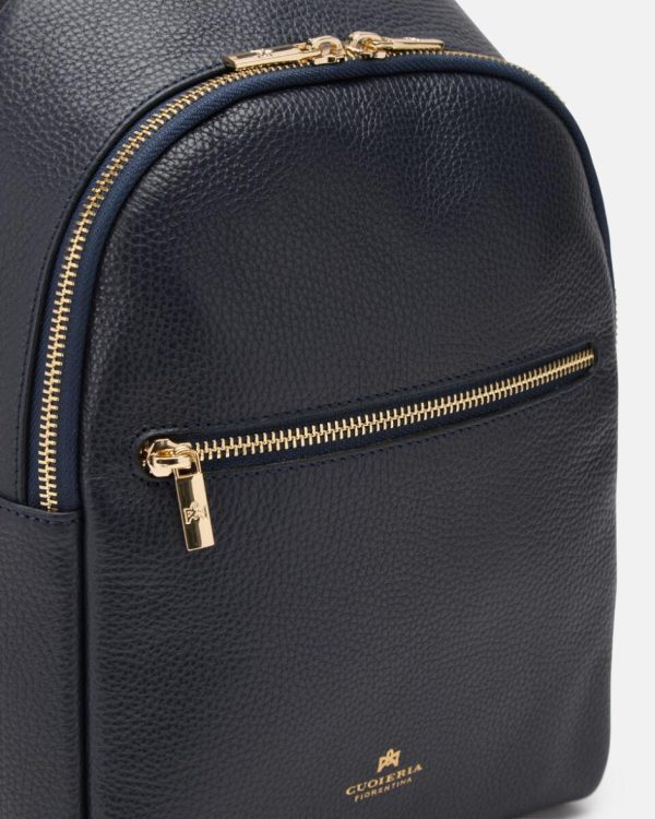 Zaini Cuoieria Fiorentina | Velvet Zainetto Urban Con Zip E Spallacci Regolabili Navy Donna