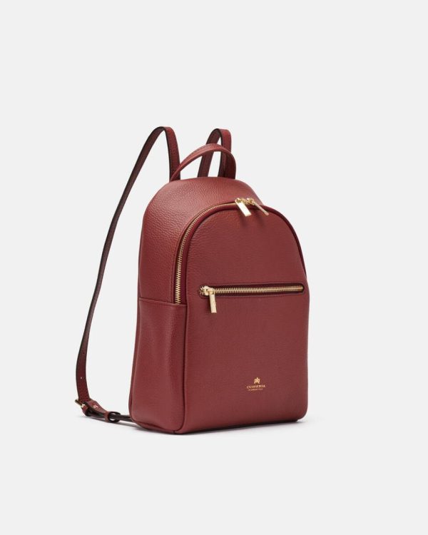 Zaini Cuoieria Fiorentina | Velvet Zainetto Urban Con Zip E Spallacci Regolabili Rosewood Donna